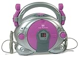 270mm x 118mm x 268mm. Das Gerät im Profi-Design begeistert Kids ebenso wie Teenies. Super-Klang durch großen Rückwand-Lautsprecher. Mit 2 Mikrofonen zum Mitsingen.Ein echter »Hingucker«: Das Gerät im Profi-Design begeistert Kids ebenso wie Teenies. Kindgerechte Bedienung durch wenige, große Funktionstasten. Das robuste Gehäuse und das kräftige Laufwerk gewährleisten einen einwandfreien Betrieb. Zwei Handmikrofone zum Mitsingen. Die Mikrofone haben Ein-/Ausschalter und können durch separate Lautstärkeregelung, wie bei einem richtigen Mischpult, stufenlos zur »Playback«-Musik der CD dazugemischt werden. Die große LED-Anzeige informiert gut sichtbar über den gerade abgespielten Titel. Der rückseitig eingebaute Lautsprecher verfügt über einen »Super-Sound«. Mit der »Repeat«-Taste können einzelne Lieder oder die ganze CD beliebig oft wiederholt werden.Lieferung: Gerät inkl. 2 MikrofonenTechnische Daten:- Große Drucktasten für Start, Pause, Stopp, schnellen Vor- und Rücklauf (Suchlauf) sowie Titelwahl Vorwärts/Rückwärts- Griffige Drehknöpfe für die Lautstärkeregelung- »Repeat«-Taste für des gezielte Wiederholen von einzelnen Musikstücken oder kompletten CDs- Titelsprung- und »Skip«-Funktion- CD-Fach mit stabilem Klappdeckel- Großes LED-Display (rot) für Titelnummer und LED-Anzeige für die Abspiel- und die»Repeat«-Funktion (grün)- Anschlussmöglichkeit für Stereo-Kopfhörer und 9 V Netzadapter (nicht enthalten)- Für Batteriebetrieb sind sechs Babyzellen 1,5 V (LR-14) erforderlich (nicht enthalten)- Ausgangsleistung 1 W- Laserklasse 1- Abmessungen: 25 x 10,5 cm.